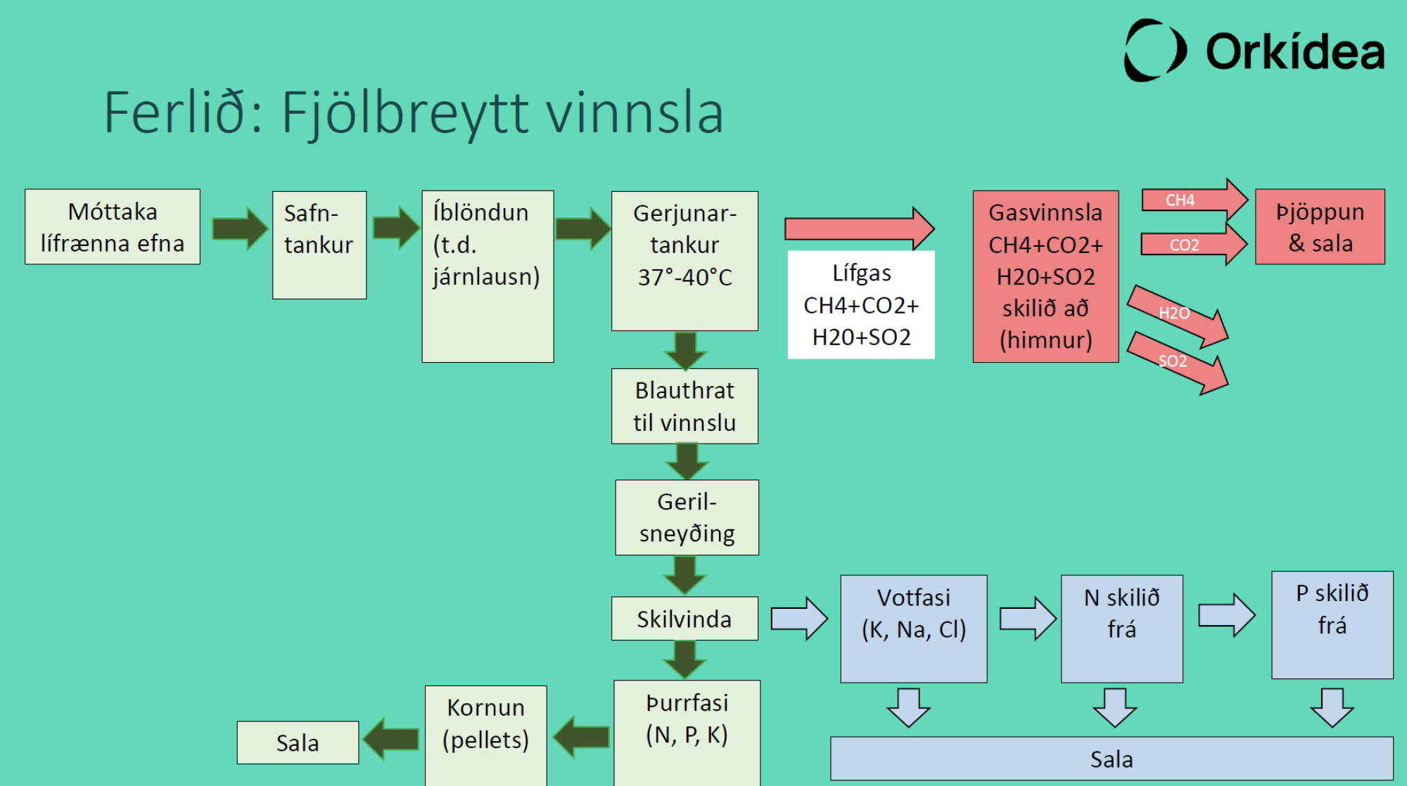 Vinnsluferlið í áburðar- og lífgasverinu sem áform eru uppi um að reisa í uppsveitum Árnessýslu. Mynd / Orkídea