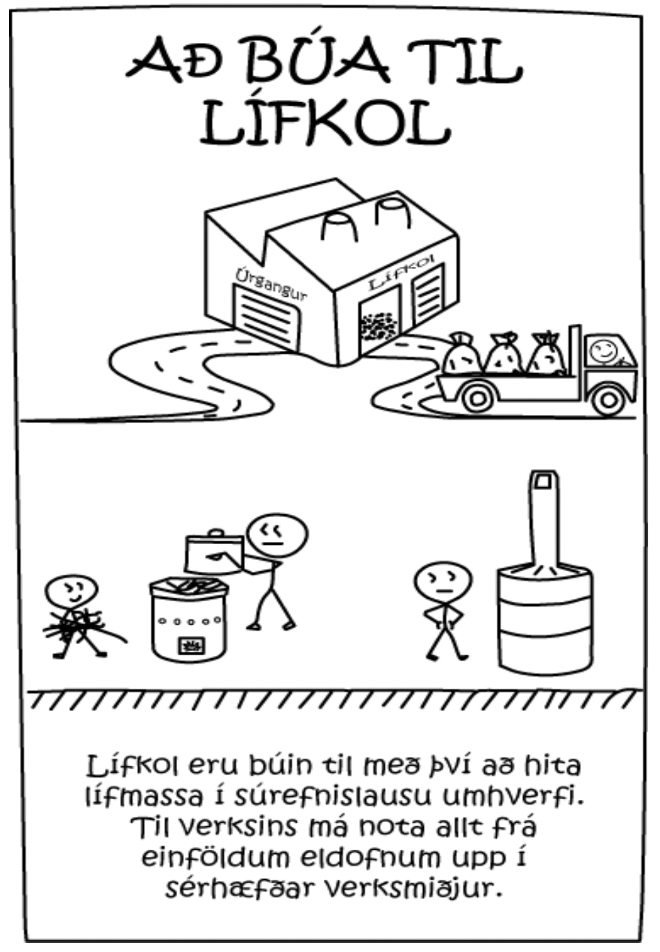 Horft er til aðferða sem hafa verið hagnýttar á meginlandi Evrópu. Þær felast í brennslu á lífrænu efni í sérhæfðum brennsluofni í loftfirrtum bruna. Engin losun er úr þessu ferli, en afurðirnar eru lífkol, sem hægt er að nota sem jarðvegs- eða fóðurbætir eða jafnvel íblöndunarefni í byggingariðnaði.