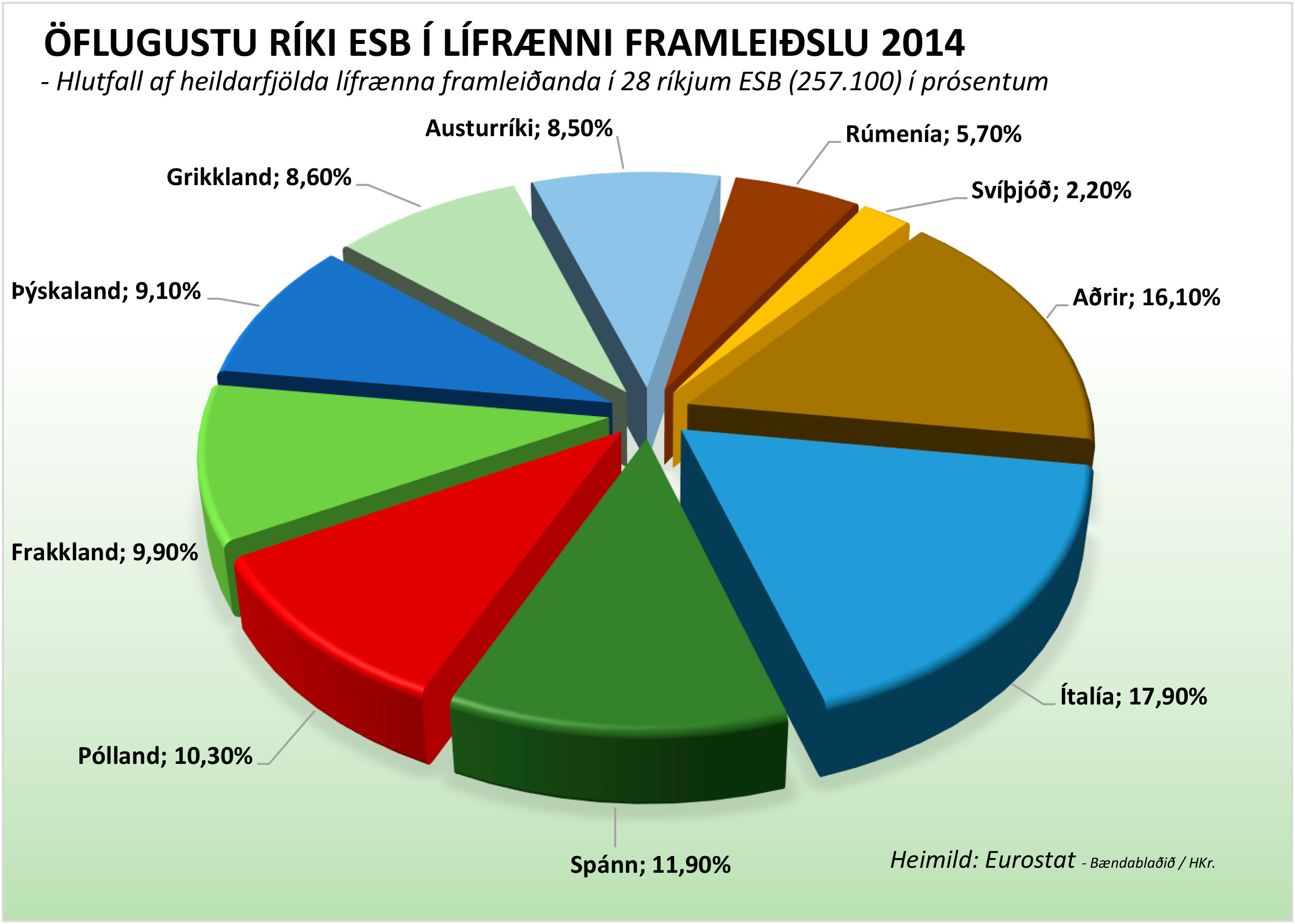 Yfir 10 milljónir hektara nýttir undir lífræna framleiðslu í ESB-ríkjunum