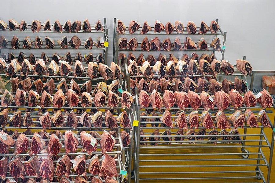 Þegar hryggbitarnir hafa verið í þessum sérstaka kæli í átta vikur, þar sem hita- og rakastigi hefur verið nákvæmlega stýrt og loftskiptum einnig stjórnað, eru kjötbitarnir teknir og myglan hreinsuð af kjötinu. Þá er það sett í lofttæmdar umbúðir og svo selt til betri veitingahúsa landsins.