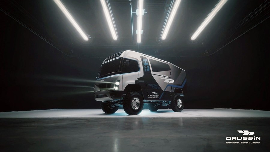 Franski vinnuvélaframleiðandinn Gaussin afhjúpaði í nóvember síðastliðnum H2 keppnistrukk, sem er fyrsta vetnisknúna farartæki heims sem hannað er til að keppa í Dakar-rallinu í Sádi-Arabíu árið 2022.