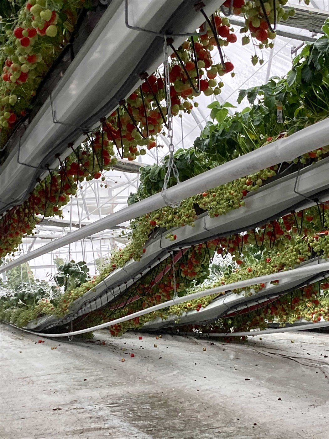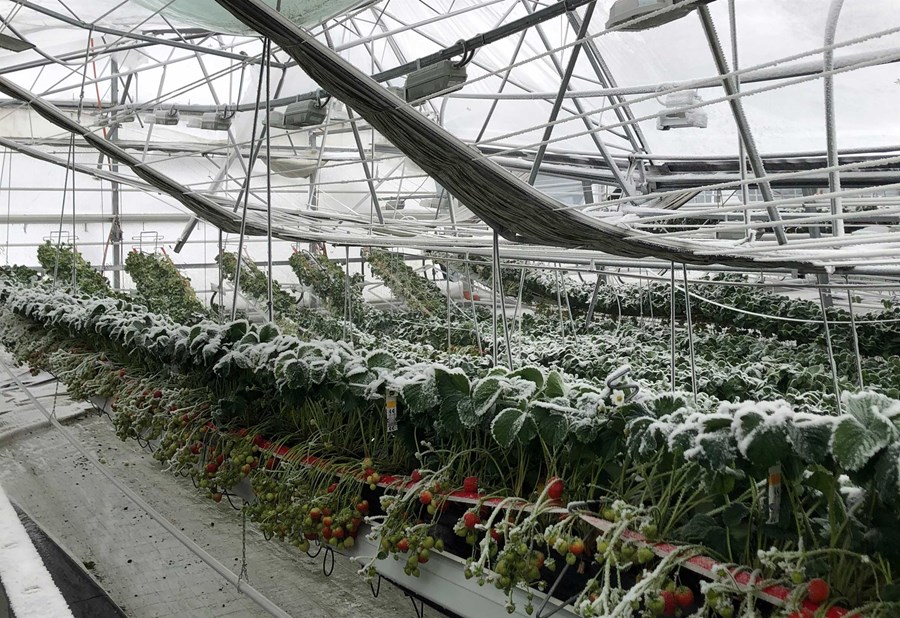 Gróðurhúsið var 2.000 fm stórt og innhélt 18.200 jarðarberjaplöntur. „Við fórum niður að stöð um leið og hægt var, þegar aðeins lægði, upp úr miðnætti. Þá var húsið farið,“ segir Steinar Ástráður Jensen annar eigandi stöðvarinnar. Ekki liggur fyrir heildartjón á þessum tímapunkti en ljóst er að ræktunarár stöðvarinnar er fyrir bí.