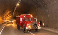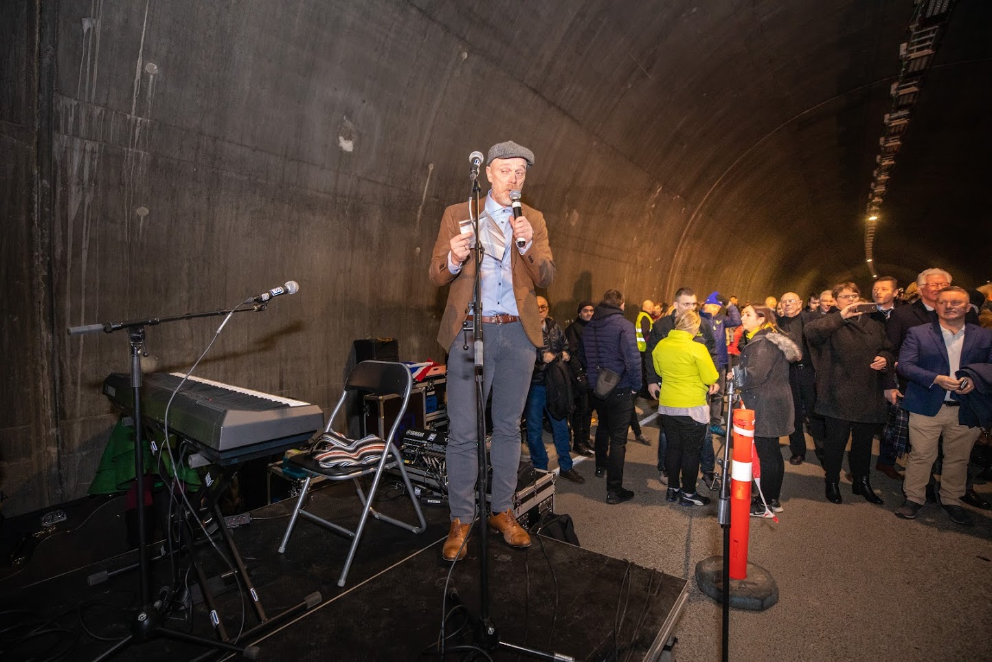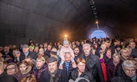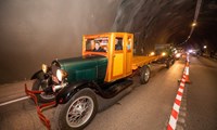 Fornbílar óku um nýju jarðgöngin við opnunina.