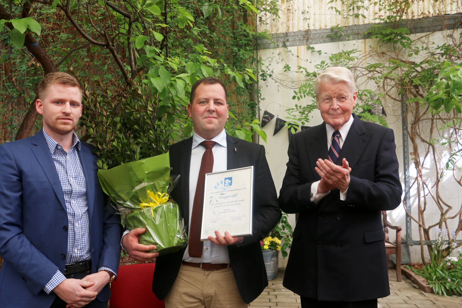 Forseti Íslands afhenti umhverfisverðlaun Hveragerðisbæjar á sumardaginn fyrsta en þau hlaut fyrirtækið Fengur í Hveragerði en fyrirtækið er brautryðjandi á sviði endurvinnslu timburs en þarna eru vörubretti tætt niður, og þurrkuð við gufu úr iðrum jarðar. Afurðin fer síðan víða sem undirburður fyrir húsdýr.