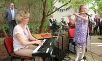 Mæðgurnar Guðríður Helgadóttir, staðarhaldari á Reykjum, og dóttir hennar, Brynhildur Erla Finnbjörnsdóttir, nemandi í Tónlistarskóla Kópavogs, spiluðu nokkur lög við hátíðarathöfnina.