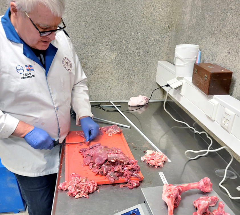 Óli Þór segir að umfang verkefnisins sé mikið. „Síðastliðið haust var farið þrisvar í sláturhús; fagsviðsstjóri kjötmats hjá Matvælastofnun valdi níu skrokka í hverjum matsflokki, sem alls eru sjö og ná yfir um 90 prósent framleiðslunnar. Helmingur allra skrokka, sem eru alls 63, fóru í þessa nákvæmnisúrbeiningu. Valdar afurðir, við getum kallað það bestu nýtingu, úr pörtum úr hinum helmingi skrokksins eru síðan myndaðir og þeir úrbeinaðir og mældir með sama hætti.
