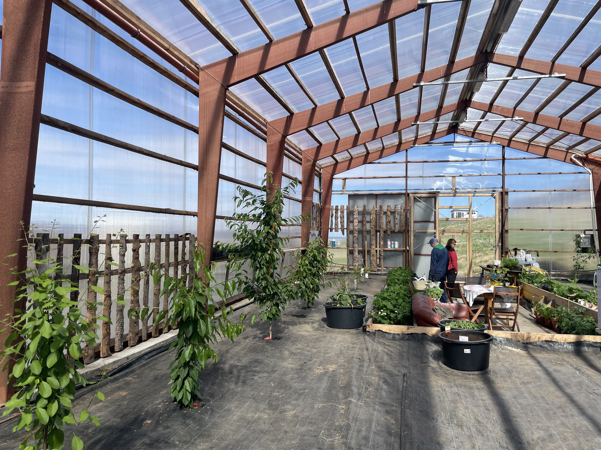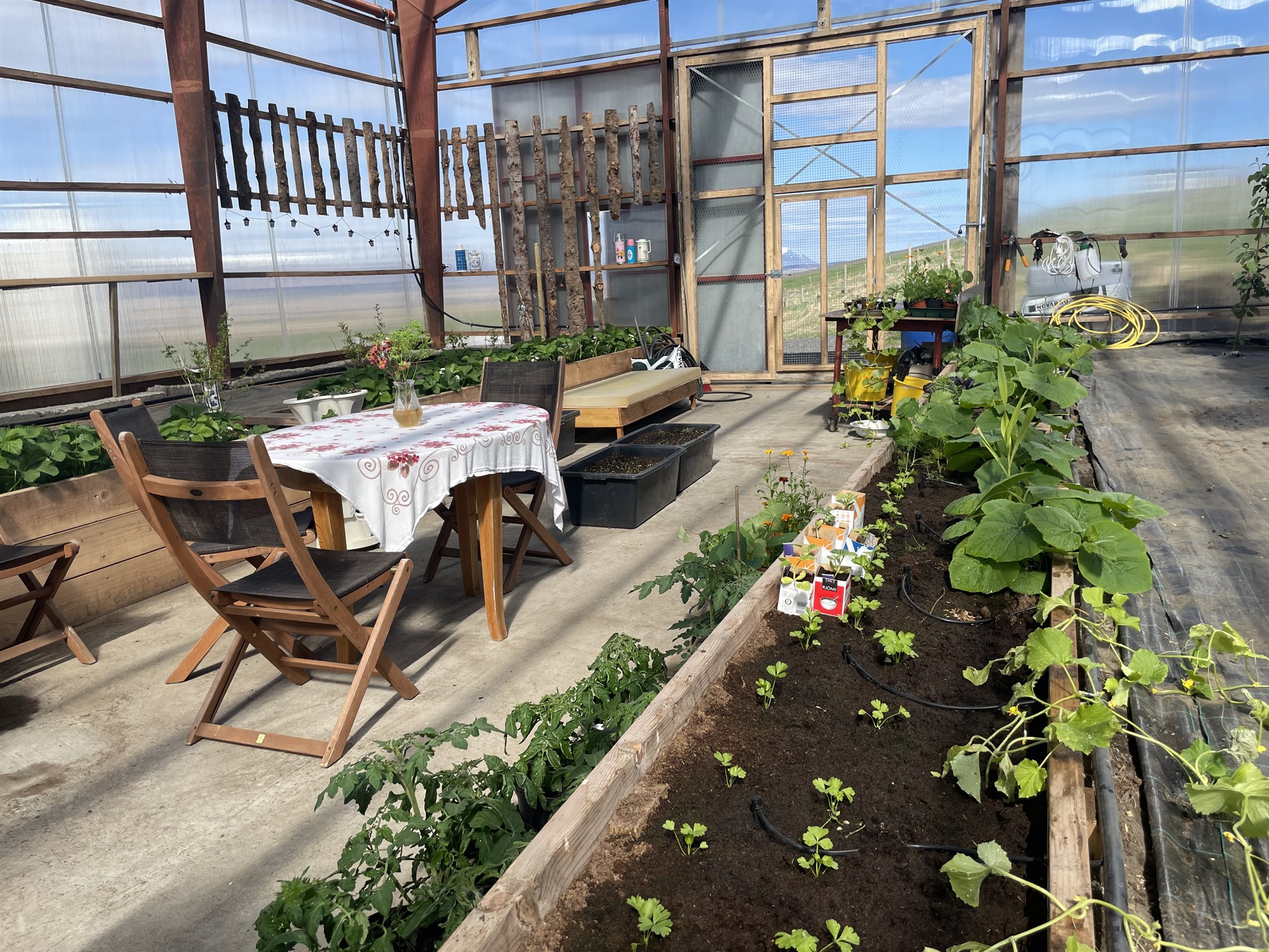 Þegar blaðamann bar að garði fyrir ári síðan voru þau að planta inn í húsið fyrstu berjaplöntunum og ávaxtatrjánum. Sögðu þau að ákvörðunin um nýtt hlutverk fyrir húsið hafi haft jákvæð áhrif á fjölskylduna, það að prófa að rækta eitthvað nýtt og skemmtilegt í húsinu hafi verið spennandi áskorun.