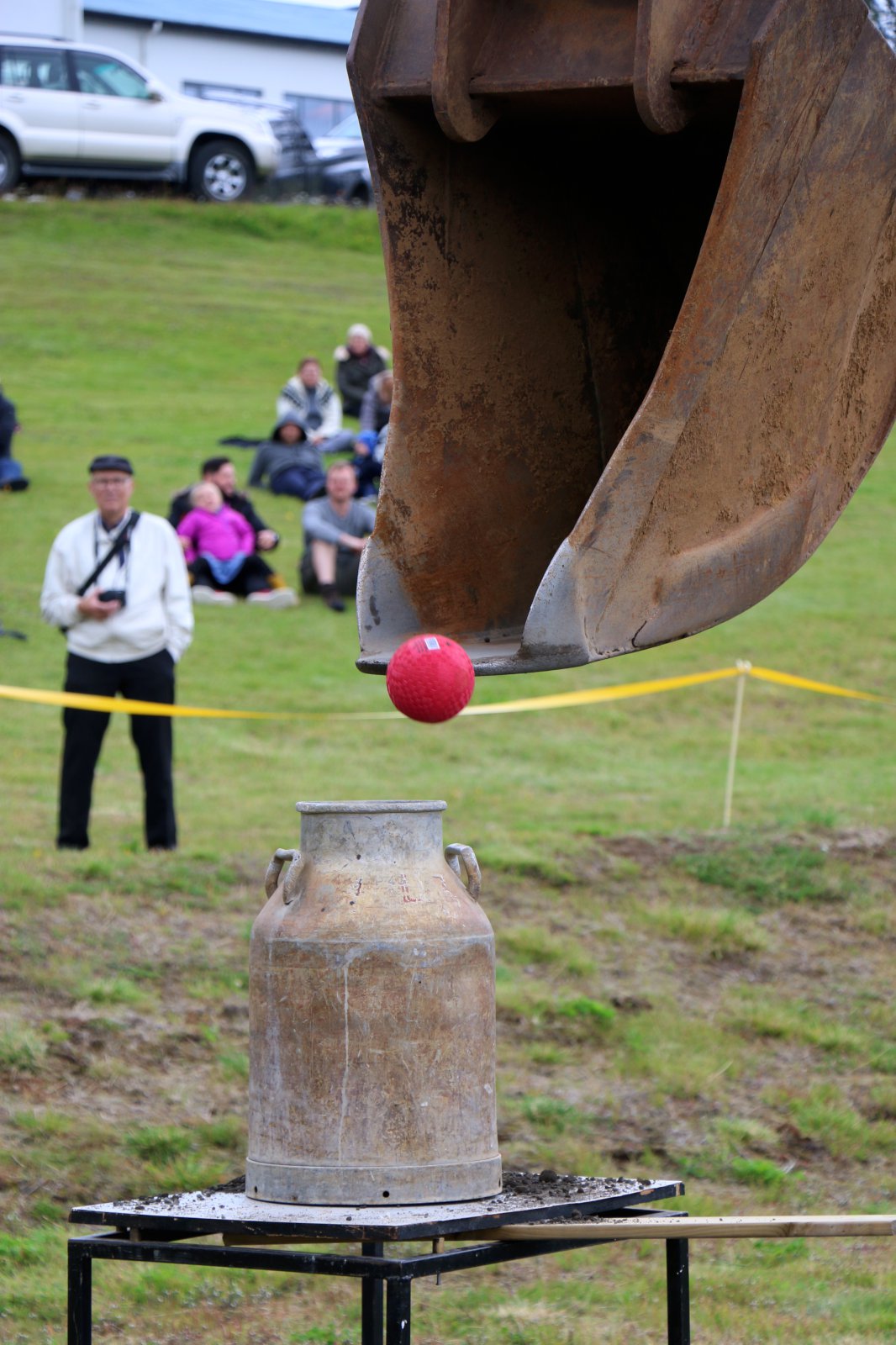 Átta keppendur tóku þátt en hver keppandi fékk 1 mínútu til að leysa hverja þraut. Byrjað var á því að skera gúrku niður í sneiðar á gröfunni, það gekk yfirleitt mjög vel. Næst var það að taka upp rör með skóflunni og raða þeim upp í pýramída, það var erfið þraut sem keppendum gekk illa með. Loks var það að taka upp bolta með skóflunni og setja hann ofan í mjólkurbrúsa. Nokkrir náðu einum bolta í brúsann en Grétar innsiglaði sigur sinn með því að ná tveimur bolta ofan í brúsann.