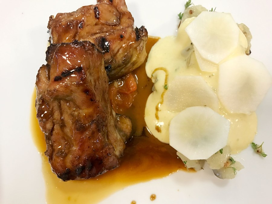 Berið fram með ristuðu rótargrænmeti og kryddjurta-hollandaise-sósu (systursósa bernaise-sósunnar), eða majónes-sósunni sem er hér til hliðar – með ögn af gljáanum til skrauts.