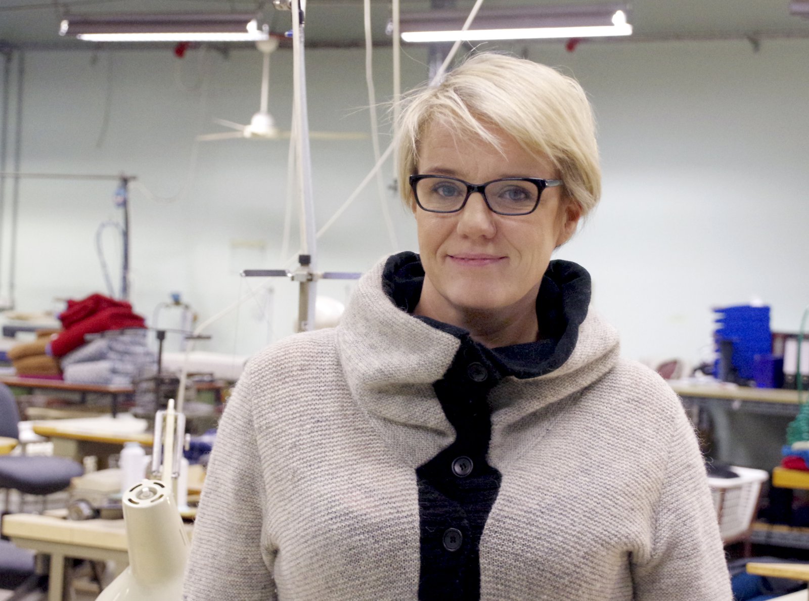 „Það eru í kringum tíu manns að vinna hér núna.Við erum að framleiða peysur og smávörur úr íslenskri ull. Það er mjög vinsælt hjá ferðamönnum að sjá að þetta er raunverulega framleitt hér, en ekki í Kína eða annars staðar,“ segir Irina.