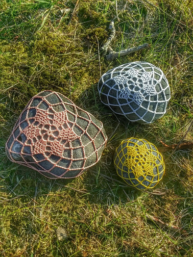 Heklað utan um steina