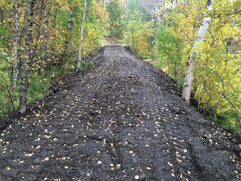 Í sumar verður lokið við 330 metra langan malbikaðan stíg í Kristnesskógi í Eyjafirði sem hafist var handa við á liðnu hausti.