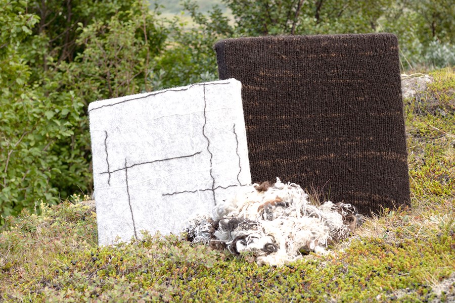 „Ég var að hjálpa til í spuna verksmiðjunni og sá þá þennan haug af garnafgöngum sem átti að fara í ruslið og ég hugsaði með mér að það hlyti að vera hægt að nýta þetta eitthvað. Eftir verknámið fékk ég fullan ruslapoka af þessu til að vinna með. Mín nálgun var allan tímann að nýta aukaafurðir úr íslenskri ullarvinnslu þar sem það kostar mikið að vinna ullina og það er mikið sem endar í ruslinu,“ segir Marta.
