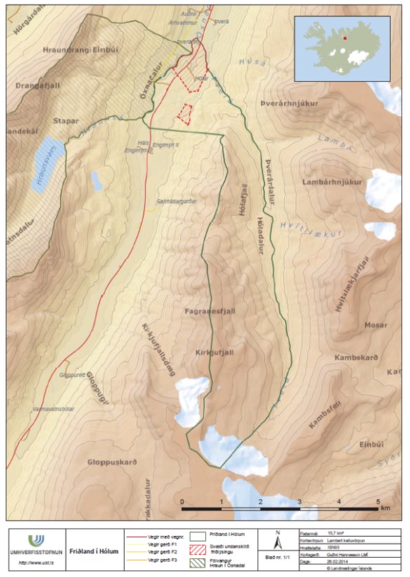 „Ég tel að landsvæðið sem ég hef umráð yfir uppfylli skilyrði sem verndarsvæði samkvæmt viðmiðum Alþjóðanáttúruverndarsambandsins. Málsmeðferð til skráningar svæðisins sem verndarsvæðis í flokki 1b, eða wilderness area, stendur nú yfir hjá helsta gagnabanka heims um verndarsvæði, World Database on Protected Areas, WDPA, sem rekinn er af Umhverfisstofnun Sameinuðu þjóðanna í samstarfi við Alþjóðanáttúruverndarsambandið. Ég á von á að skráningu ljúki fljótlega. Friðun óbyggðra víðerna er allströng friðun, en hún er talin eiga við á langstærstum hluta jarðarinnar Hóla og fer flokkunin eftir markmiðum verndunarinnar.“