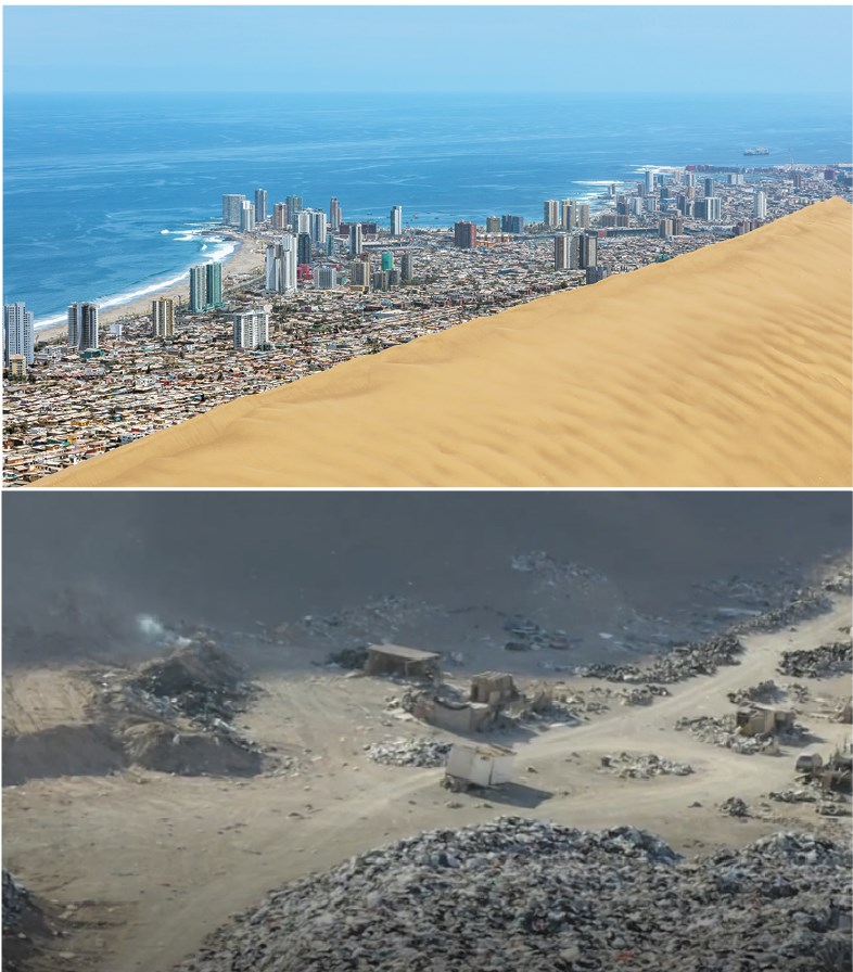Hafnarborgin Iquique er 1.800 km norður frá höfuðborg Chile, við sjóinn á jaðri Atacama eyðimerkurinnar. Þangað eru flutt í kringum 60 þúsund tonn af fatnaði ár hvert, en vel yfir helmingur innflutningsins, tæp 40.000 tonn, endar sem uppfylling landsvæða í nærliggjandi bæjum.