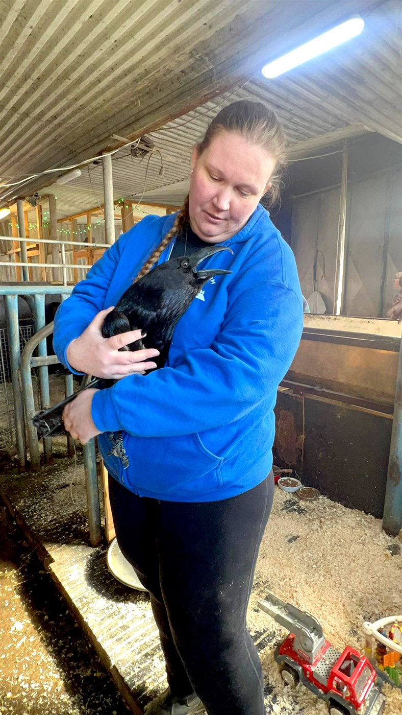 „Við stóðum bæði við færibandið, hann á öðrum endanum og ég hinum. Eftir fyrsta kossinn fórum við að vera saman og höfum verið í tuttugu ár.“ Hjónin, sem stóðu lengi vel í fjárbúskap, ventu kvæði sínu í kross fyrir nokkrum árum og hófu að taka að sér dýr sem þurftu á aðhlynningu eða heimili að halda. Hrafn nokkur, í dag kallaður Krummi, er eitt þeirra.
