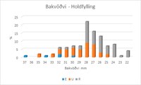 Samræmið er metið hér með því að reikna fylgni milli þessara tveggja mælinga. Margir þekkja að við höfum haldið því fram að bakvöðvaþykktin sé besta mæling sem við höfum yfir að ráða til að meta vöðvamagnið í skrokknum hjá lambinu. Holdfyllingarmatið er að vísu ekki einvörðungu mat á vöðvamagni skrokksins heldur einnig gerð hans og lögun. Allir sem við sláturlínu hafa staðið vita að vandasamar er að sjá vöðvamagn á hrygg en fyllingu við herðar og í mölum og lærum. Þetta samhengi var ákaflega breytilegt á milli búa. Samt var verulegur hluti búana með þetta samræmi á bilinu 40–50% sem að okkar mati er það sem verður að teljast gott í gögnum eins og þessum. Samræmi er hér metið sem fylgni milli þessara tveggja dóma. Við sáum það sem við teljum okkur oft hafa séð, að á búum með kollótt fé er þetta samræmi mjög takmarkað. Þetta hefur ætíð sést hjá mörgum af kollóttu sæðingahrútunum. Hjá þeim hyrndu var slíka einstaklinga einnig að finna á fyrstu árum EUROP-kjötmatsins en hafa tæpast sést síðustu ár. Við birtum hér þetta samræmi fyrir það bú í gögnum okkar þar sem samræmið var mest og eins og sjá má þá er það miklu meira en möguleiki ætti að vera að finna í slíkum gögnum. Gerðaflokkarnir skiptast nánast eftir vöðvaþykkt en við meðaltal er mestur fjöldi lambanna og þar er einnig að finna skiptin á milli U og R flokks í þess­um gögnum.