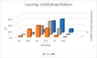 Síðasta sambandið sem við skoðuð­um var á milli lærastigunar og flokkunar fyrir gerð. Hér var samræmið í langflestum tilvika á bilinu 40–50%, í örfá skipti örlítið meira og í nokkrum tilvikum minna. Þau örfáu tilvik þar sem samræmið gat vart kallast viðunandi gátum við ekki greint neitt sameiginlegt á þessum búum, enda varla hægt að vænta þess með svo fá tilvik. Það er hins vegar greinilegt að þetta er sá einstaki matsþáttur sem mest segir til um mat fyrir gerð þó framparturinn og hryggurinn eigi að vega jafnt á við afturpartinn í kjötmatinu. Á mynd 4 er sýnt samræmið á milli matsins fyrir gerð og lærastiga. Þetta er eitt stærsta búið í gögnunum og mat lambanna mjög gott en samræmið líkt því sem gerist að jafnaði. Eins og myndin sýnir skilur lærastigunin gerðarflokkana verulega að.