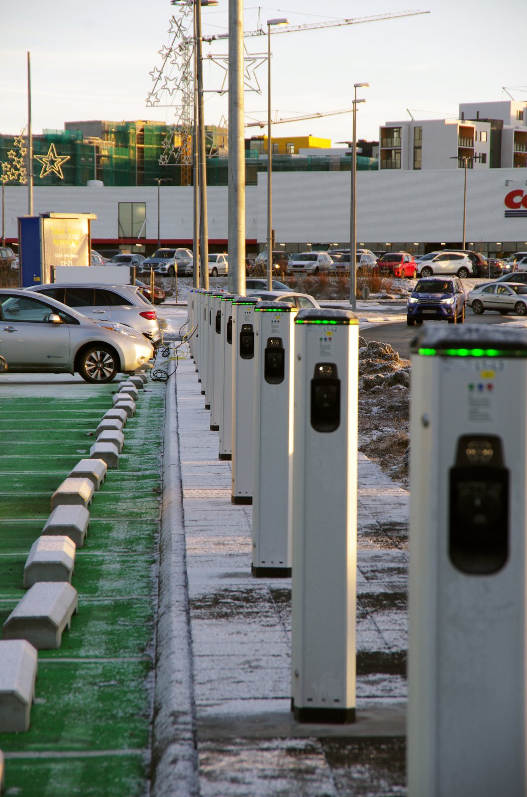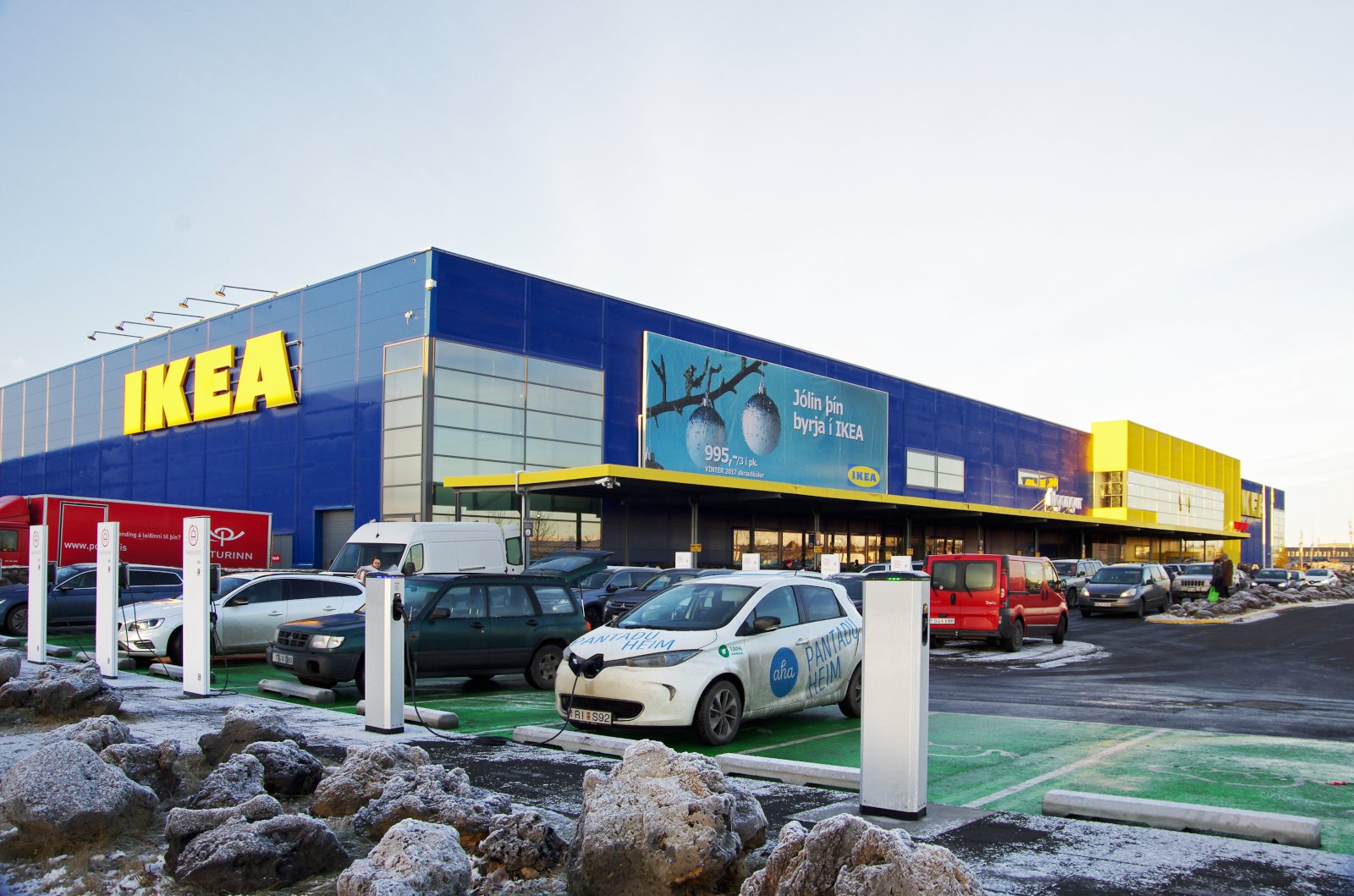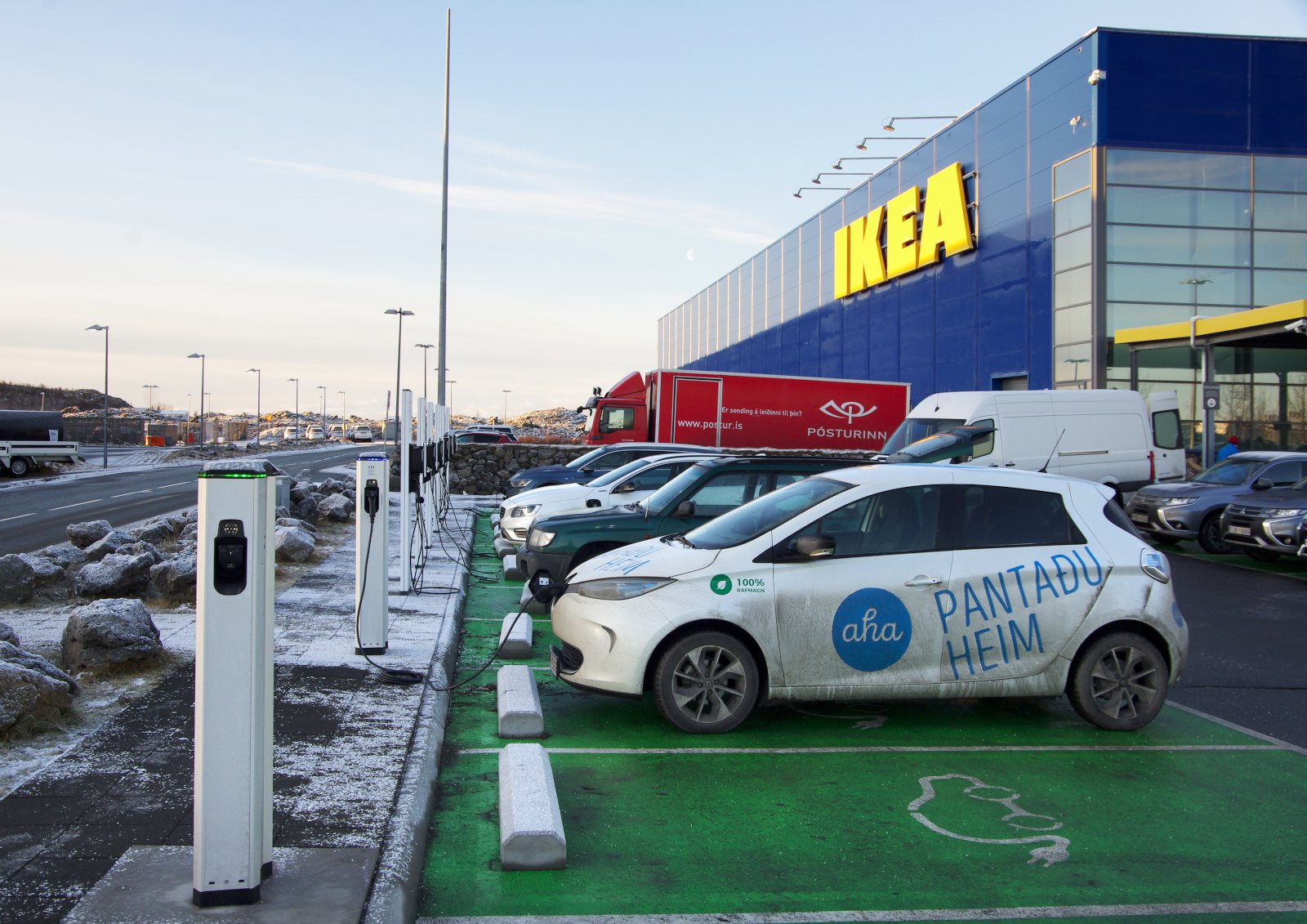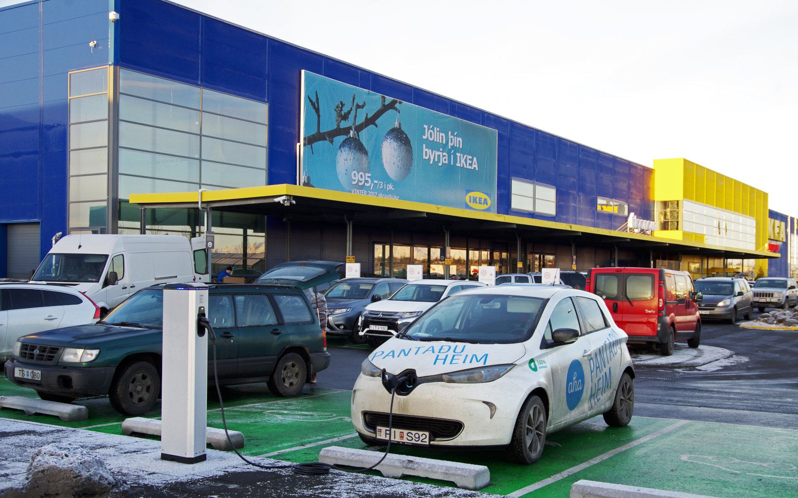Það er líka annað sem er tengt bílastæðunum og þjónustunni við viðskiptavini IKEA, en það er fjöldi hleðslutækja sem búið er að setja upp fyrir rafbíla. Hvaða hugsun er þar í gangi?