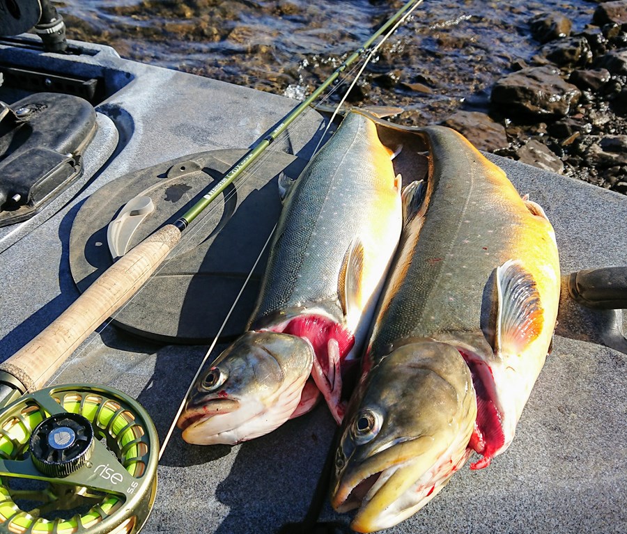 Meðfylgjandi mynd er af bleikjunum í Vatnsdalnum. „Ég notaði kajakinn aðeins til þess að dóla mér um vatnið, en veiddi bleikjurnar frá landi. Báðar tóku þær fluguna Krókinn nr. 14 andstreymis,“ sagði Ólafur í lokin.