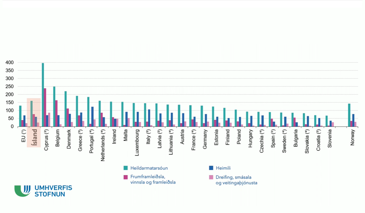 Í frumframleiðslunni, svo sem landbúnaði og sjávarútvegi, er að sögn Jóhannesar, stærsti hlutinn í matarsóun vegna þess að Ísland framleiðir svo mikið af matvælum en ekki vegna þess að svo miklu sé sóað.
