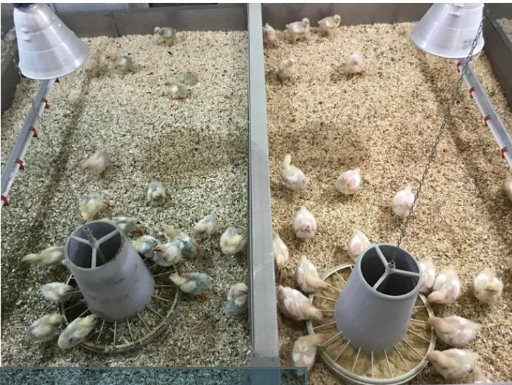 Kjúklingafóður sem innihélt mikið magn af nýpróteini úr örþörungum reyndist fara illa í fuglana, auk þess sem fjaðrir þeirra urðu grænar. Mynd / Skjáskot