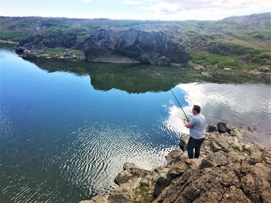 „Við vorum við veiðar, feðgarnir, fyrr í sumar og komum við í Urriðaá á Mýrum, áin var frekar vatnslítil á efri svæðunum, eins og oft gerist á þessum tíma í þurrki. En mjög góð skilyrði voru á flóðinu í neðstu fjórum hyljunum og hann sýndi sig þar í góðu veðri, sól, 15 stiga hita og logni,“ segir Hörður Alexander Eggertsson veiðimaður, þegar hann rifjar upp veiðitúr í sumar sem var skemmtilegur.