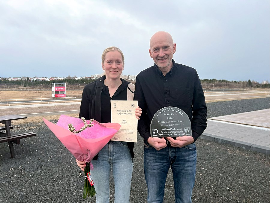 „Þetta er fyrst og fremst viðurkenning á því að ræktunin og sýningarárið hafi gengið vel. Mér finnst þetta sérstaklega gaman núna því þetta voru eiginlega allt ný hross sem við vorum að sýna. Tvö voru áður sýnd en annars voru þetta átta hross sem við vorum að sýna í fyrsta skiptið og megnið fjögurra og fimm vetra,“ segir Gísli. Það að verða ræktunarbú ársins var ekki eitthvað sem þau stefndu beint að, enda erfitt að fylgjast með hvað önnur bú eru að gera og segja þau útnefninguna hafa komið sér ánægjulega á óvart þar sem svo mörg bú voru með frábæran árangur. „Hins vegar eru verðlaunin afar hvetjandi og maður hefur þau stundum bak við eyrað þegar sýningar byrja.“