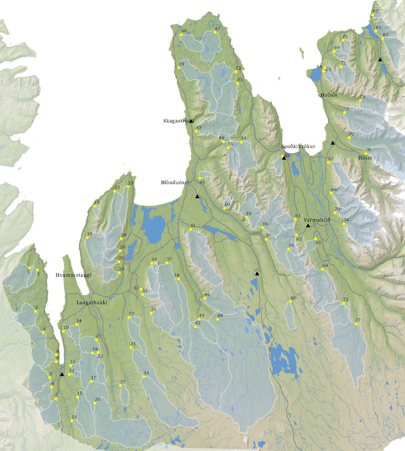 Yfirlitsmynd yfir smávirkjanakosti og vatnasvið á Norðurlandi vestra. Mynd / Mannvit