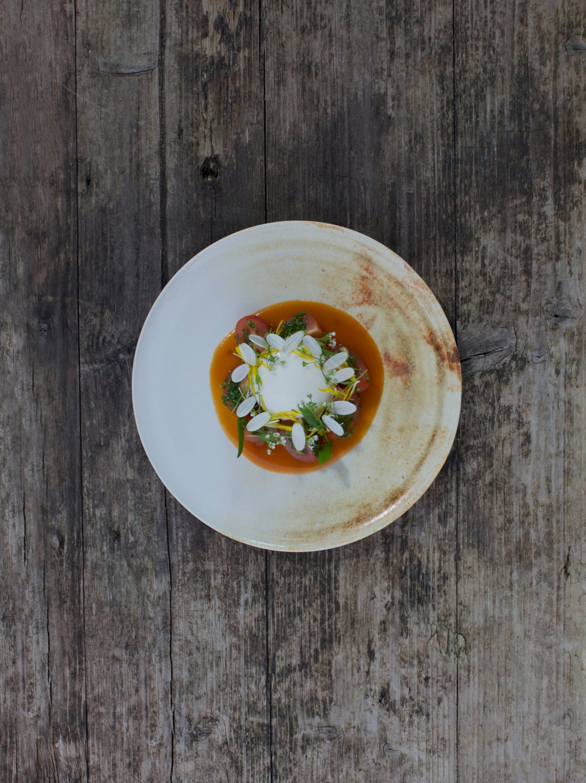 Hugmyndafræði matreiðslu minnar gengur mikið út á að nota það sem maður finnur í nærumhverfinu og íslenskt hráefni. Auðvitað kemst maður ekkert alveg undan því að flytja eitthvað inn en við reynum að halda því í lágmarki. Þá erum við hrifin af því að nota hráefni sem hefur verið unnið með gömlum og góðum verkunaraðferðum; til dæmis taðreyking, söltun eða súrsun í mysu – svo eitthvað sé nefnt. Svo er sérstaklega ánægjulegt að geta sett slíkar afurðir í nýjan búning sem hæfir fínni veitingastöðum.“