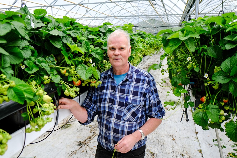 „Það má búast við því að júlí og ágúst verði sölumestu mánuðirnir hjá okkur sem ræktum jarðarber á Íslandi,“ segir Eiríkur Ágústsson í Silfurtúni. „Það eru kostir og gallar við að vera eingöngu með jarðarber; það auðveldar allt vinnuskipulag að vera með þetta svona, en á móti kemur að það er meiri áhætta ef eitthvað kemur upp á.