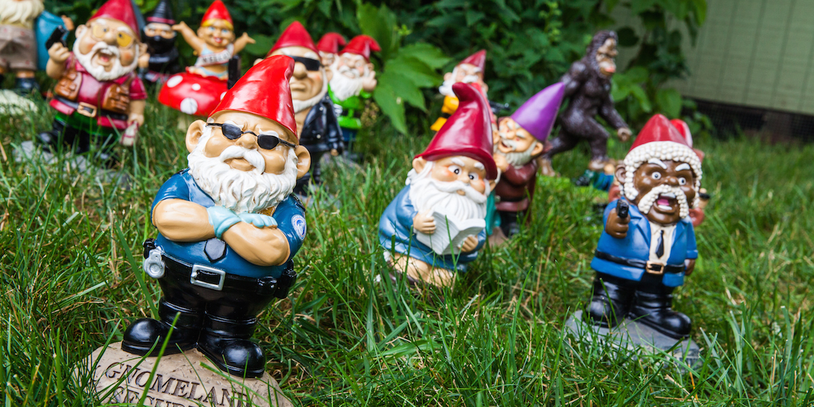 Garðeigendur eru ófeimnir við að skreyta garðinn með alls kyns fígúrum, gervifuglum, plastblómum og síðast en ekki síst garðálfum, sem eru fáanlegir í margs konar útgáfum.