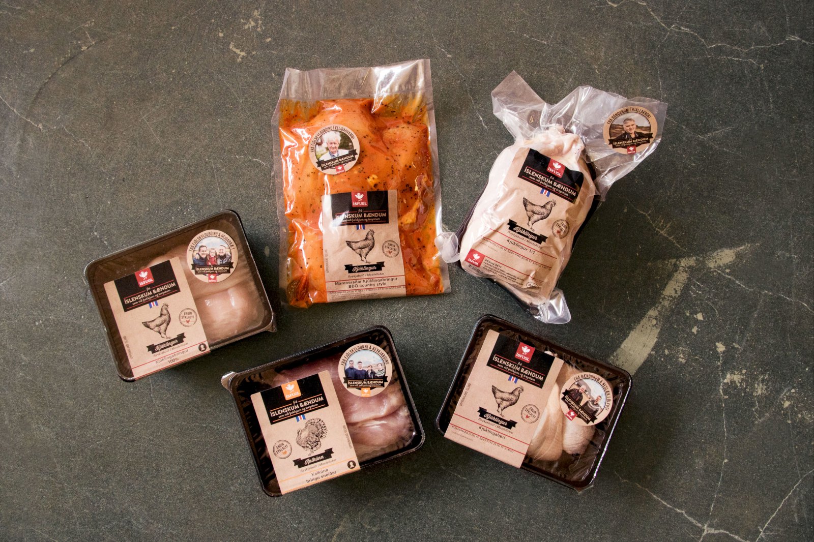 Nýju merkingar Ísfugls bera myndir af bændunum, auk þess sem upplýsingar um þá er að finna á vefnum isfugl.is. Mynd / Ísfugl
