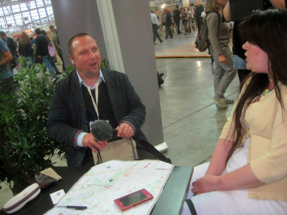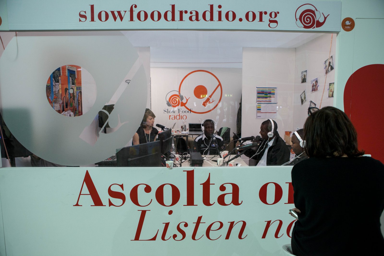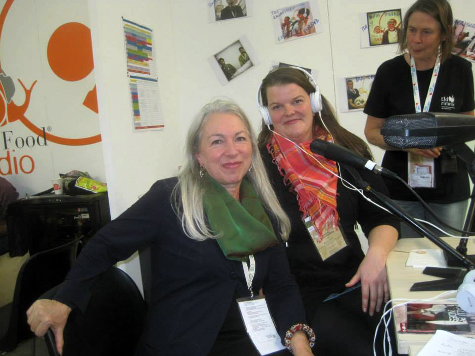 Í miðju viðtalinu við Arnheiði stökk enskur útvarpsmaður frá BBC inn í hljóðverið í einhverju glensi og fór að taka viðtal við útvarpskonu Slow Food Radio. Síðar rakst ég á þennan útvarpsmann á Terra Madre Kitchen-svæðinu og setti hálfpartinn Eirnýju í fangið á honum – og sagði honum hvernig hún hefði afrekað að fá tíu prósent af þjóðinni á bændamarkað til að kaupa vörur af smáframleiðendum. Hann bókaði hana auðvitað strax í viðtal. Hún var alveg á heimavelli í því viðtali – talar óaðfinnanlega ensku, en hún bjó lengi á Bretlandseyjum. Gat útskýrt í þaula allt um smáframleiðslu á Íslandi og sértaklega um skyrframleiðslu og ostagerð – enda sérfróð um osta.