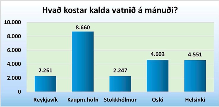 Í tilefni af Degi vatnsins þann 22. mars gerði Orkuveita Reykjavíkur samanburð á kostnaði íbúa á veitusvæði OR af nýtingu ferskvatns og orku í samanburði við íbúa annarra höfuðborga á Norðurlöndum. Óhætt er að segja að þessi samanburður er okkur Íslendingum mjög í hag og mættu menn hafa það í huga þegar borin eru saman lífsgæði milli landa. Vatn er nú þegar orðin ein mikilvægasta auðlind veraldar og alls ekki sjálfgefið að þjóðir hafi yfir höfuð aðgang að nægu ferskvatni. Ljóst er að þar njóta Íslendingar sérstöðu sem á án efa eftir að skipta þjóðarhag verulegu máli á næstu árum og áratugum. Ásamt Norðmönnum eiga Íslendingar mestu vatnsauðlindir í Evrópu.
