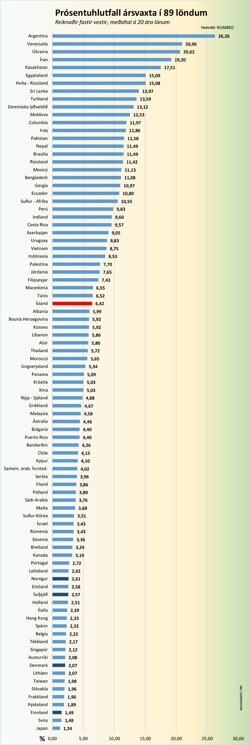 Ísland skipar sér í hóp mestu vaxtaokursþjóða veraldar