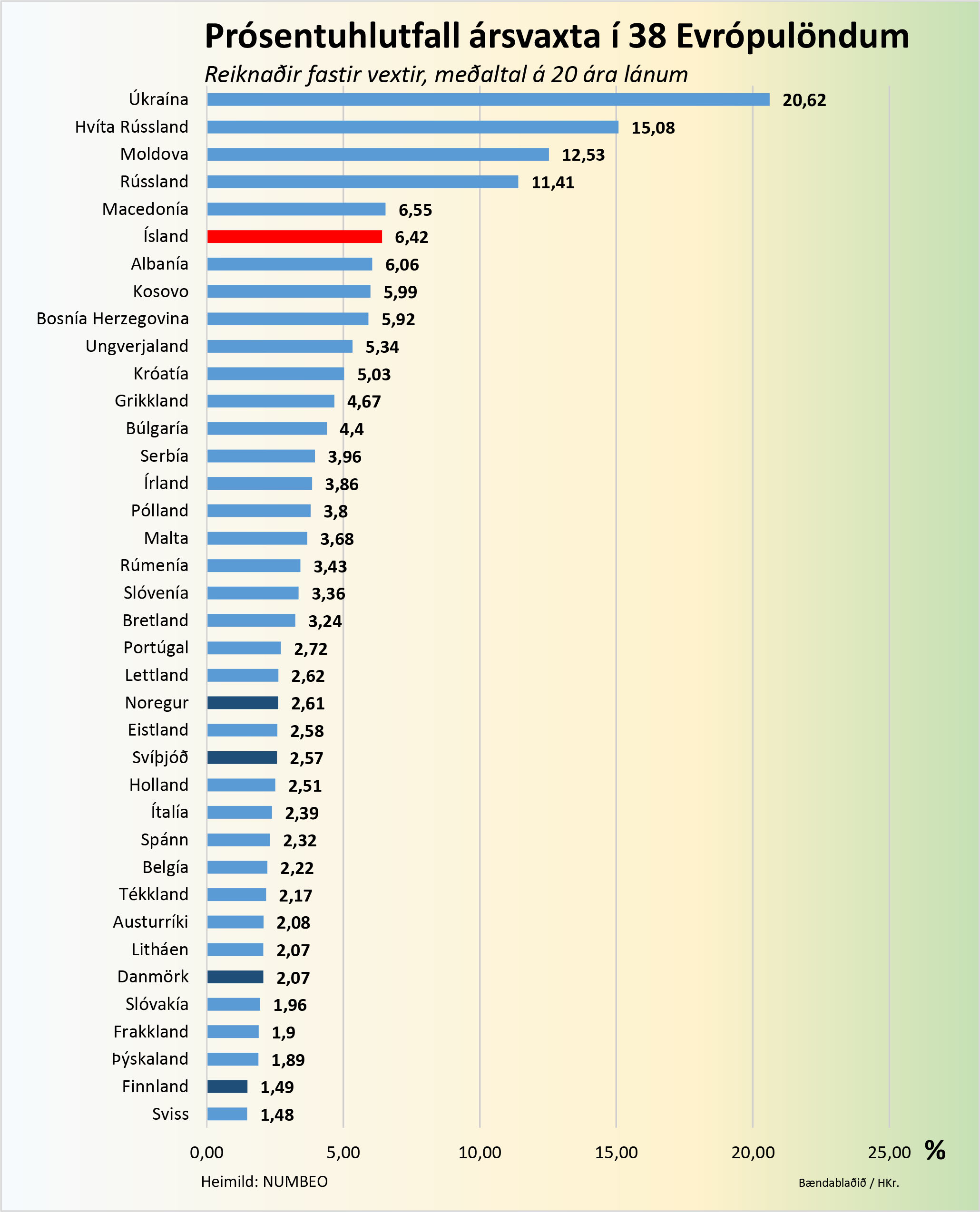 Í hópi allra mestu vaxtaokursþjóða Evrópu