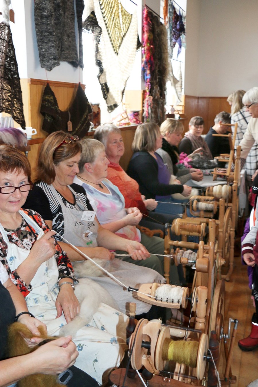 „Þetta gekk frábærlega, hér var troðfullt hús af áhugasömu fólki um ullarvinnslu og ullarvöru og við fórum létt með að setja Íslandsmet í fjöldaspuna,“ segir Maja Siska hjá Spunasystrum.