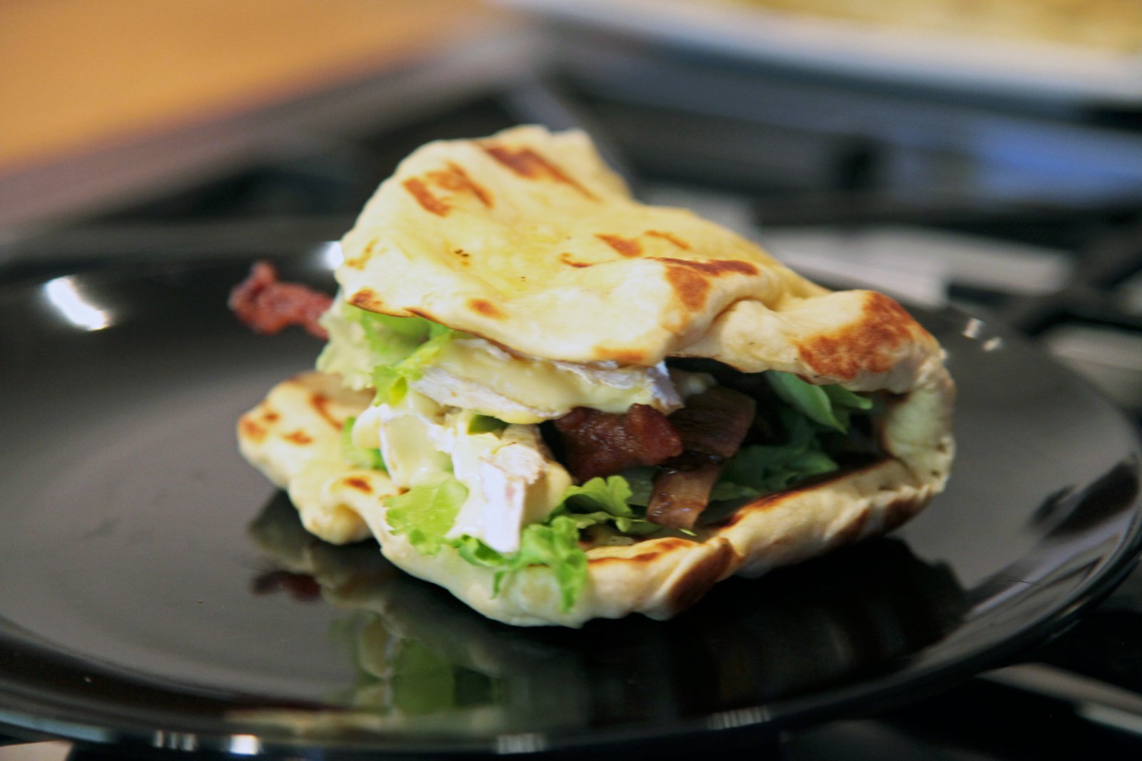Naan-samloka með Brie-osti, nautasteik og mangó chutney