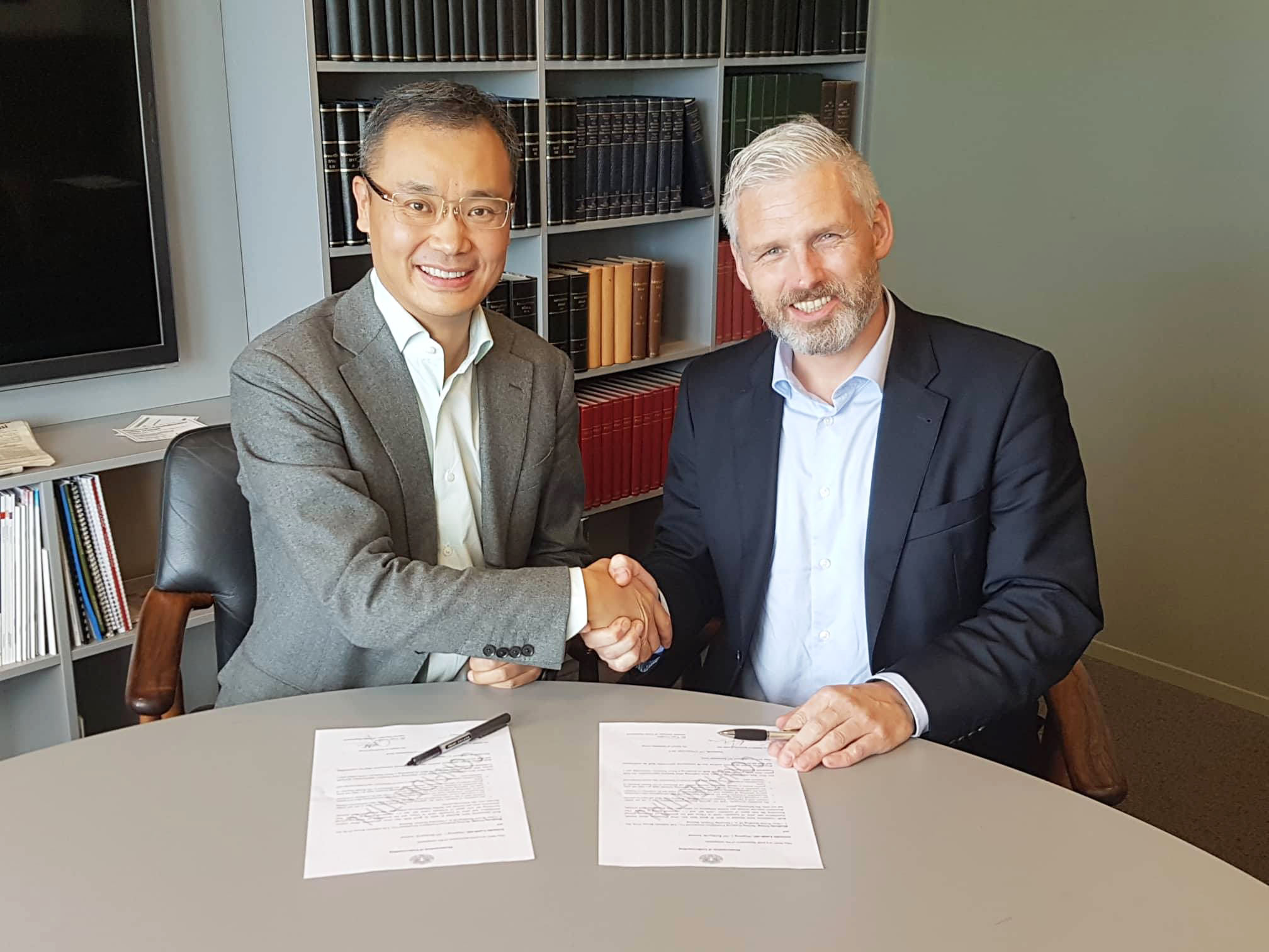 Svavar Halldórsson, framkvæmdastjóri markaðsstofunnar Icelandic Lamb ásamt Yuan Younghui, deildarstjóra innkaupadeildar kínverska risafyrirtækisins Huahong Group, sem er annar þeirra aðila sem til greina koma sem innflytjandi á íslensku lambakjöti til Kína.