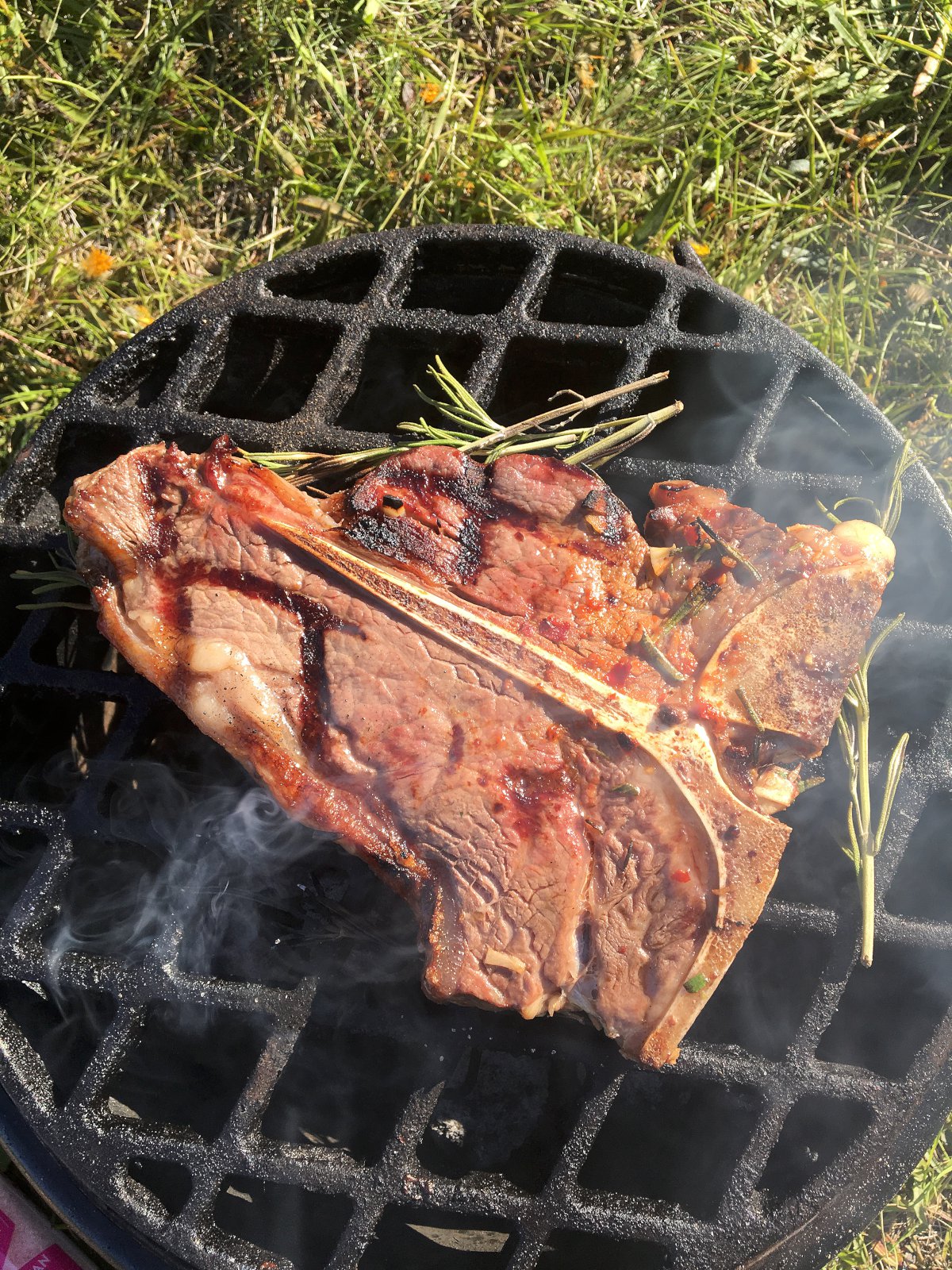 Hér er steik af ítölskum uppruna. Hefðbundið er að bera cannellinibaunir og sítrónubáta fram með henni. Íslenskar kartöflur eru hins vegar fullkomin viðbót við þennan rétt. Þá er alveg kjörið að pensla kjötið með rósmarínstilkum greinum og leyfa þeim svo að brenna á grillinu svo kjötið reykist með rósmarínreyknum. Það mætti líka setja greni á grillið.