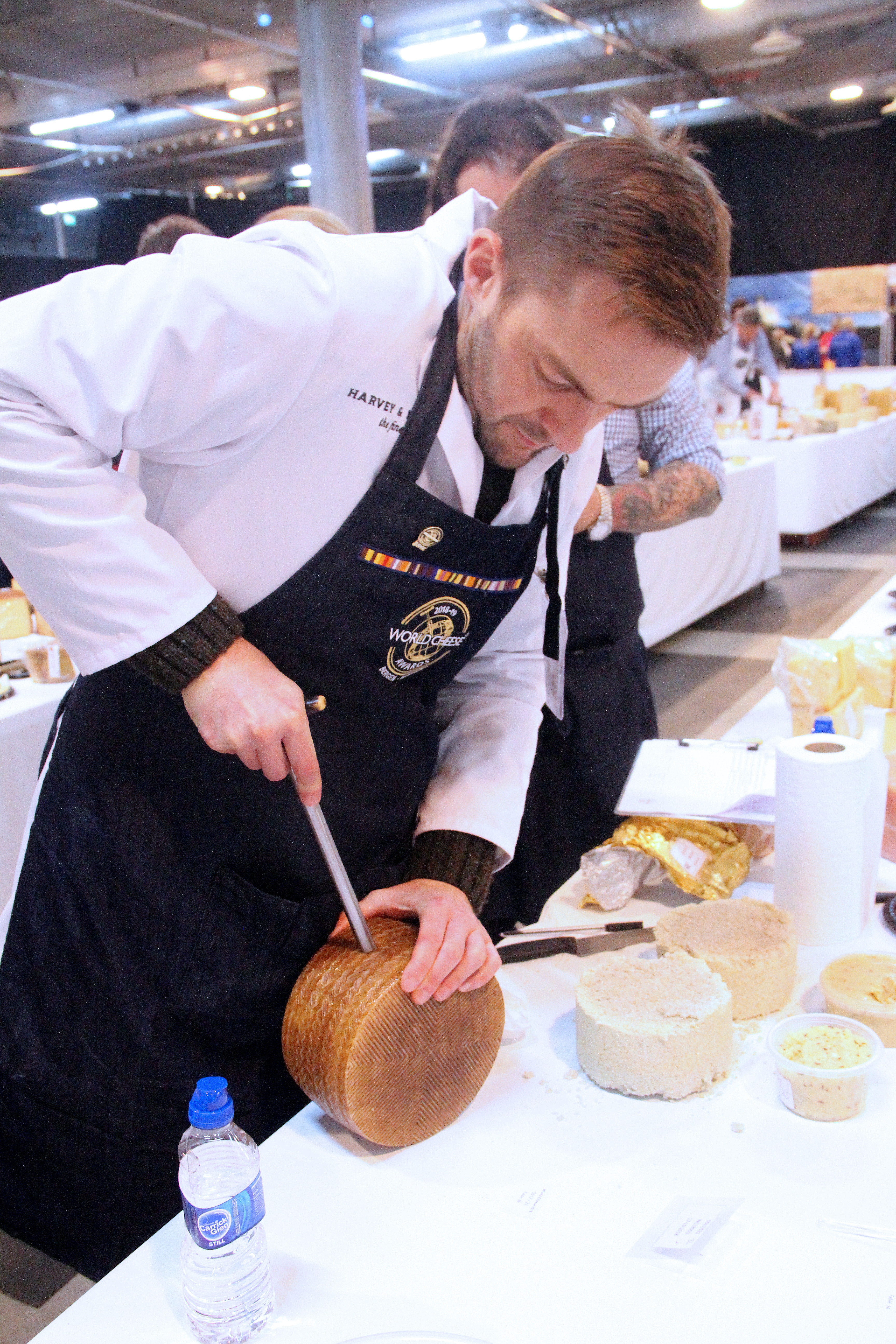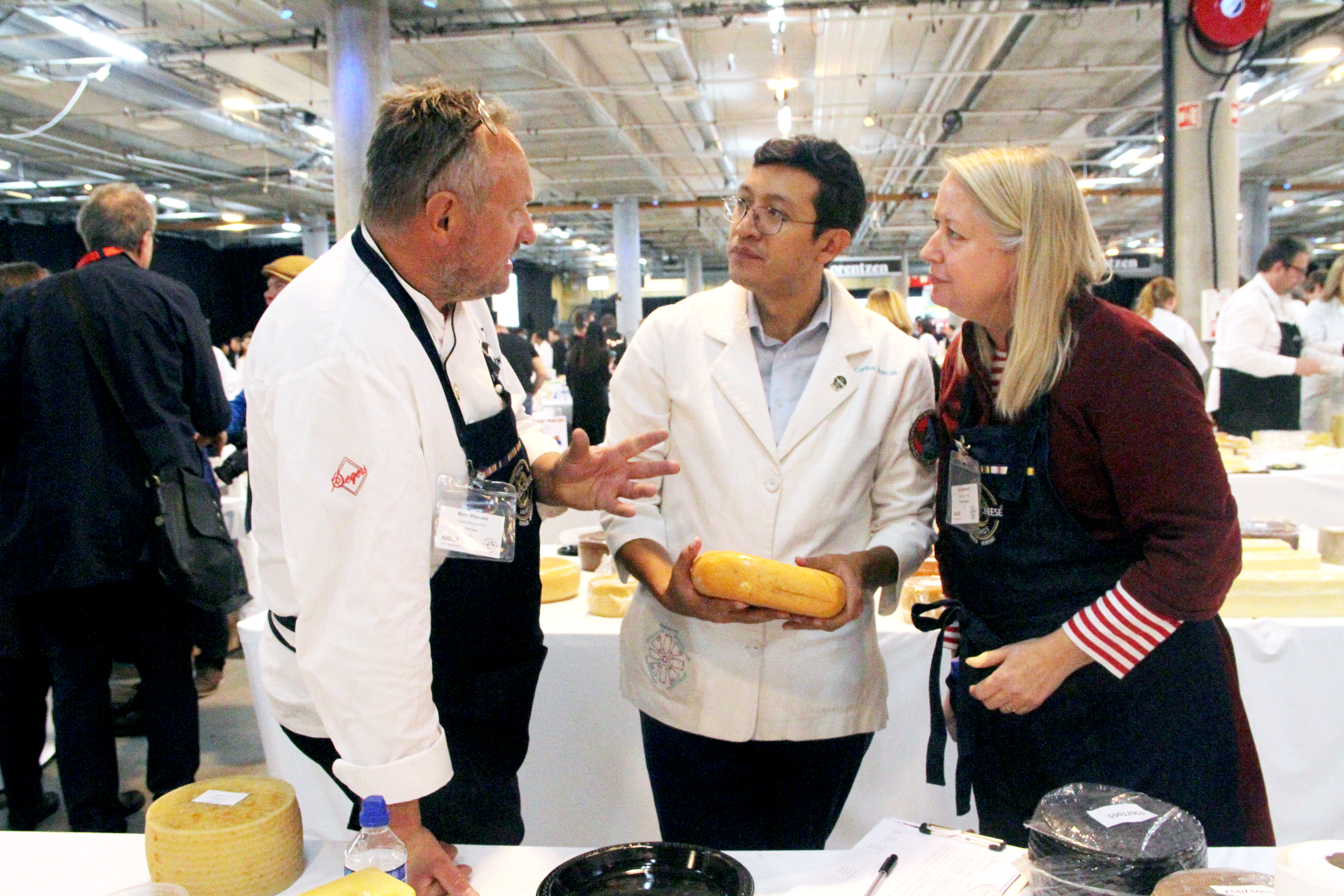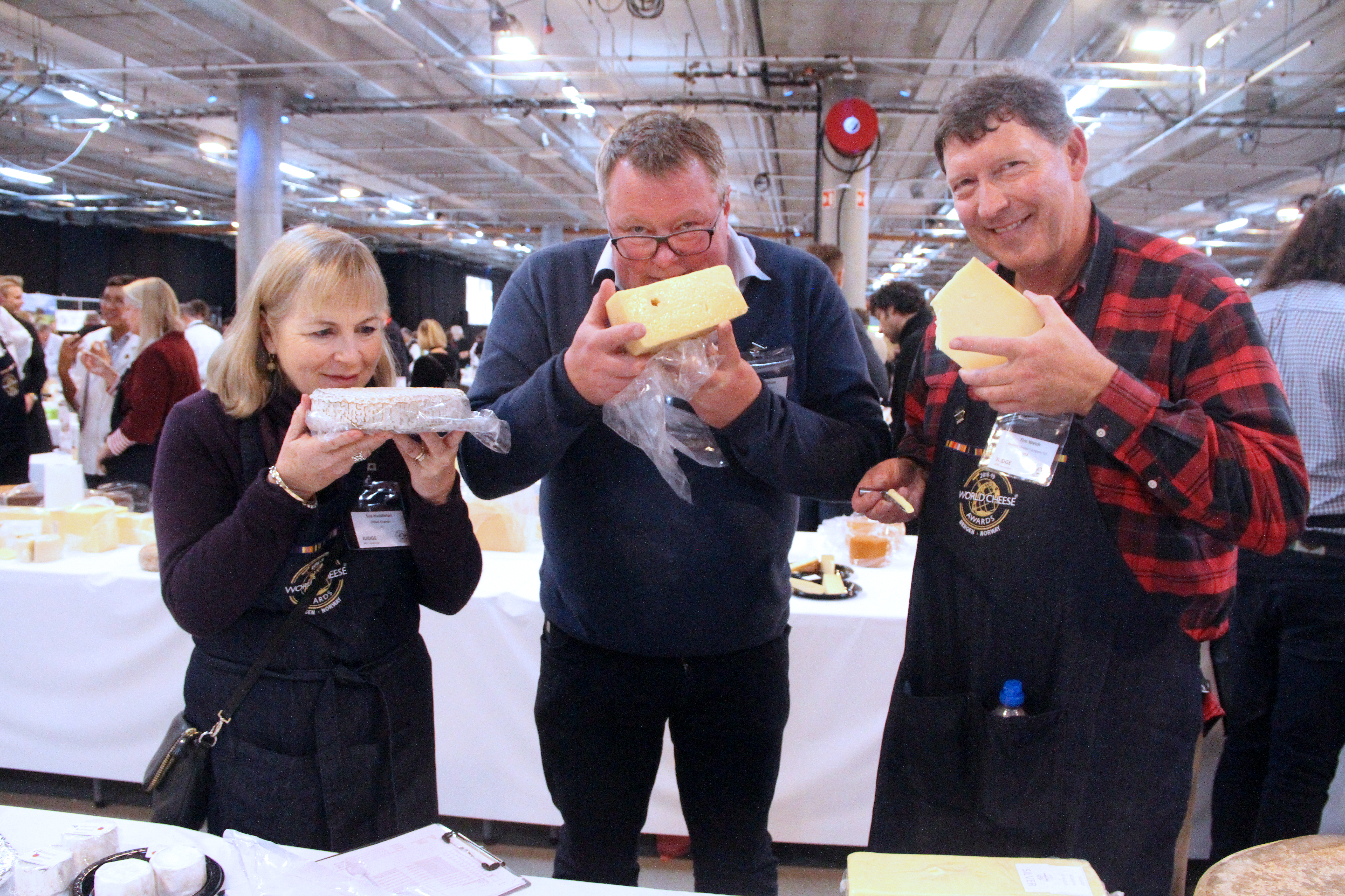 „Við horfum í áferð, útlit, lykt og bragð og ekki má vera minnsta frávik í áferðinni sem dæmi,“ sagði Olav Lie Nilsen, ostabóndi og hóteleigandi í Noregi, sem var einn af dómurum keppninnar. Með honum eru Sue Haddleton frá London og Tim Welsh, ostaframleiðandi frá Salt Lake City í Utah í Bandaríkjunum. Mynd / ehg