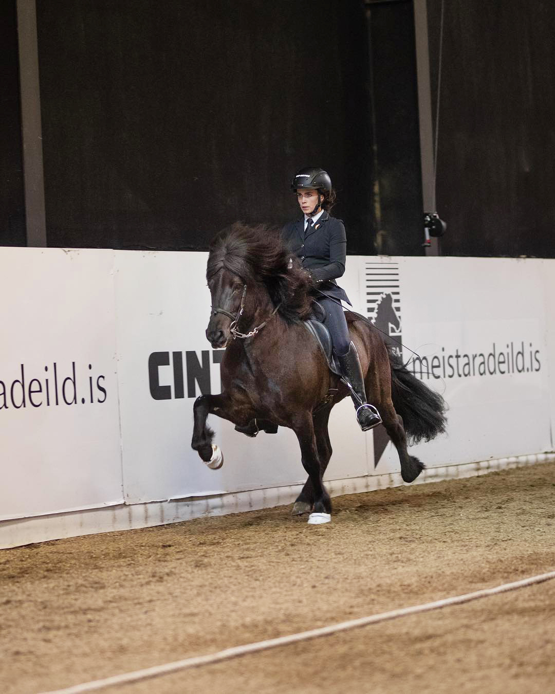 Þar þurfa keppendur að bruna gegnum reiðhöllina á fljúgandi skeiði og getur munað aðeins sekúndubrotum milli fyrsta og tíunda sætis. Jakob Svavar fór brautina á 6,06 sekúndum á Jarli frá Kílhrauni sem tryggði honum 10. sæti. Aðalheiður Anna og Ása frá Fremri-Gufudal voru örlítið fljótari, eða 6,02 sekúndur og endaði í 8. sæti greinarinnar.