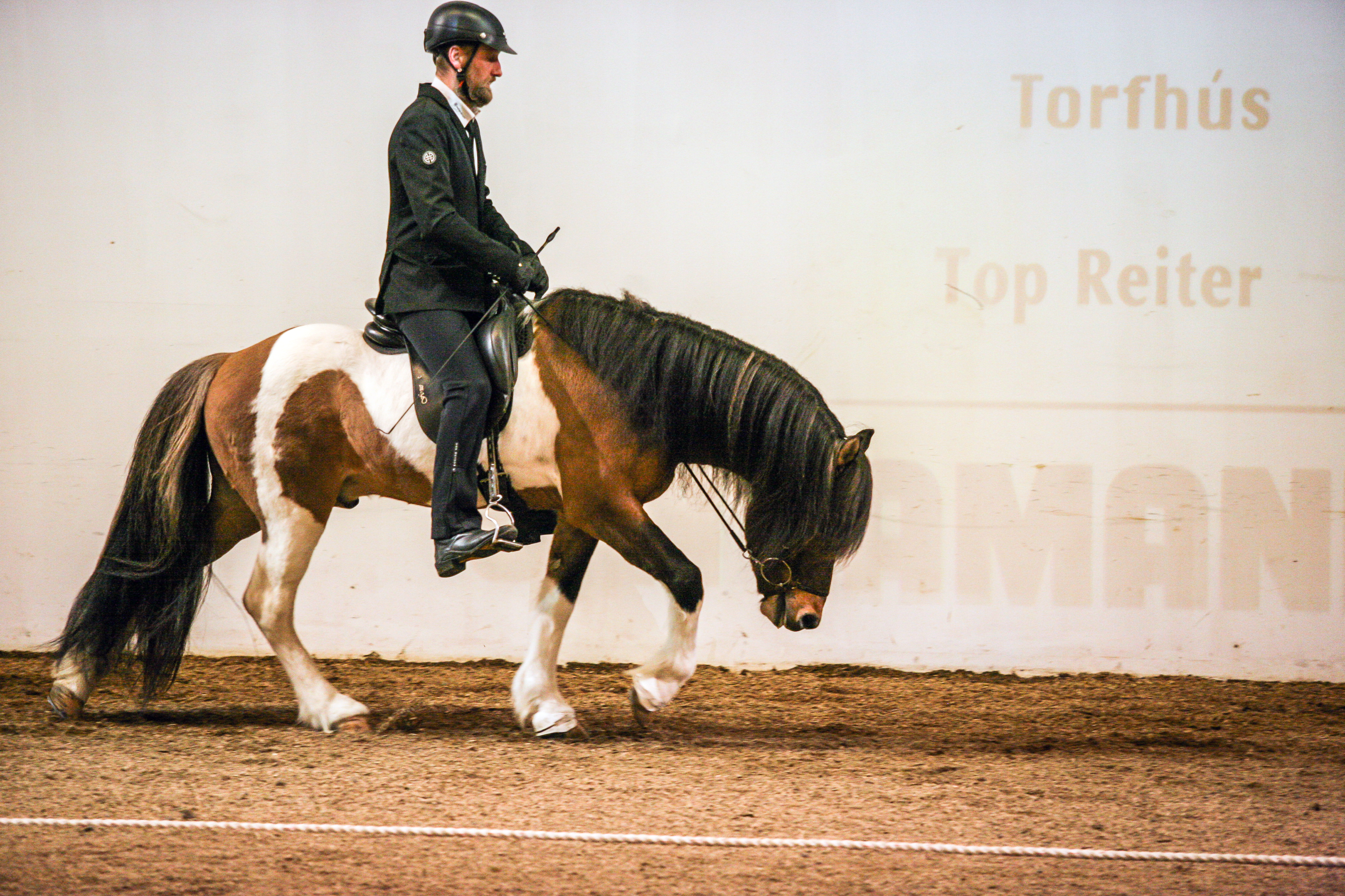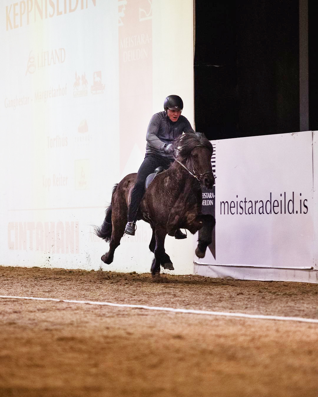 Fljótastir á fluguskeiði urðu hins vegar Guðmundur Friðrik Björgvinsson á Glúmi frá Þóroddsstöðum sem skutust í gegnum höllina á 5,73 sekúndum. Heimsmethafinn Konráð Valur Sveinsson á Kjark frá Árbæjarhjáleigu II varð annar á tímanum 5,76 og þriðji var Árni Björn Pálsson á Skykkju frá Breiðholti í Flóa á 5,79 sekúndur.