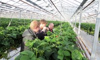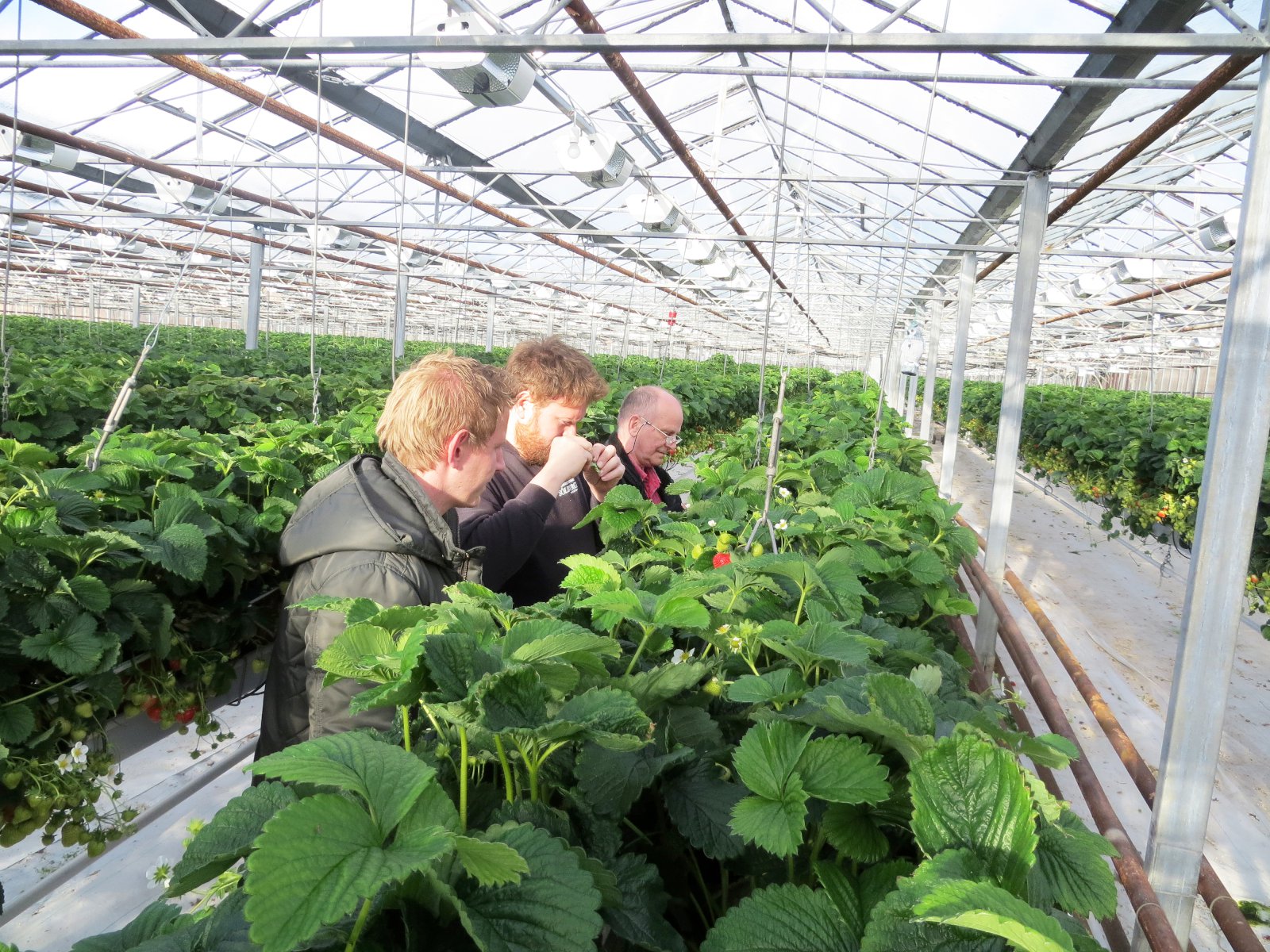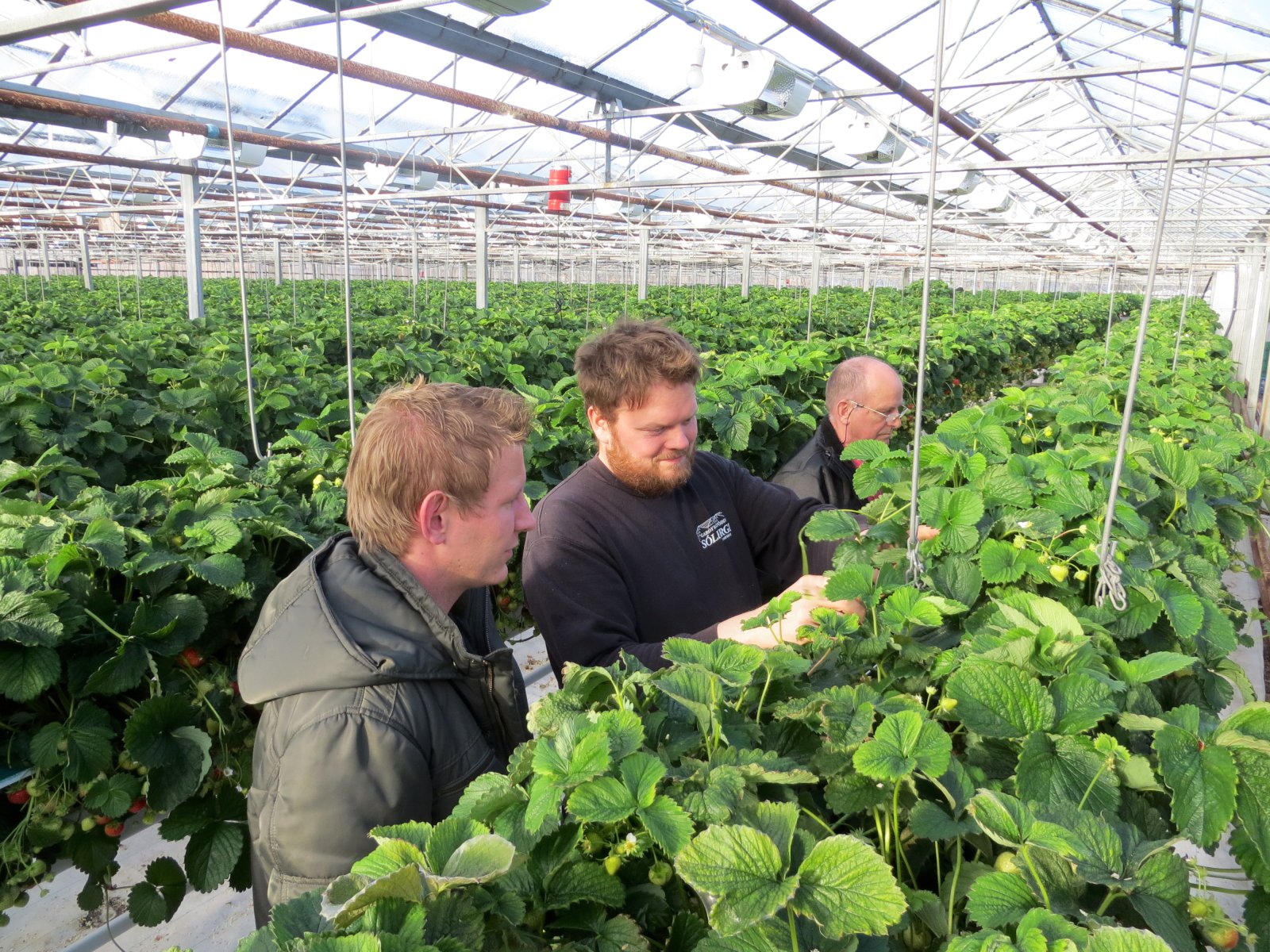 Borgar Páll Bragason, fagstjóri í nytjaplöntum hjá Ráðgjafarmiðstöð landbúnaðarins, leit við á dögunum í Sólbyrgi og var hollenskur ráðunautur sérfróður í jarðarberjaræktun með í för. Hann heitir Rob Van Leijsen og var hann ánægður með það sem hann sá og væntir góðrar uppskeru. Rob hafði einnig fram að færa mjög gagnlegar ábendingar sem munu nýtast þeim hjónum til að ná enn betri árangri í ræktun sinni.