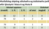 Jákvæð áhrif hærri ljósstyrks á markaðshæfa uppskeru var aukning um 13 % / 19 % (hluta A / hluta B). Munurinn milli mismunandi ljósstyrks þróast í upphafi uppskerutímabils.