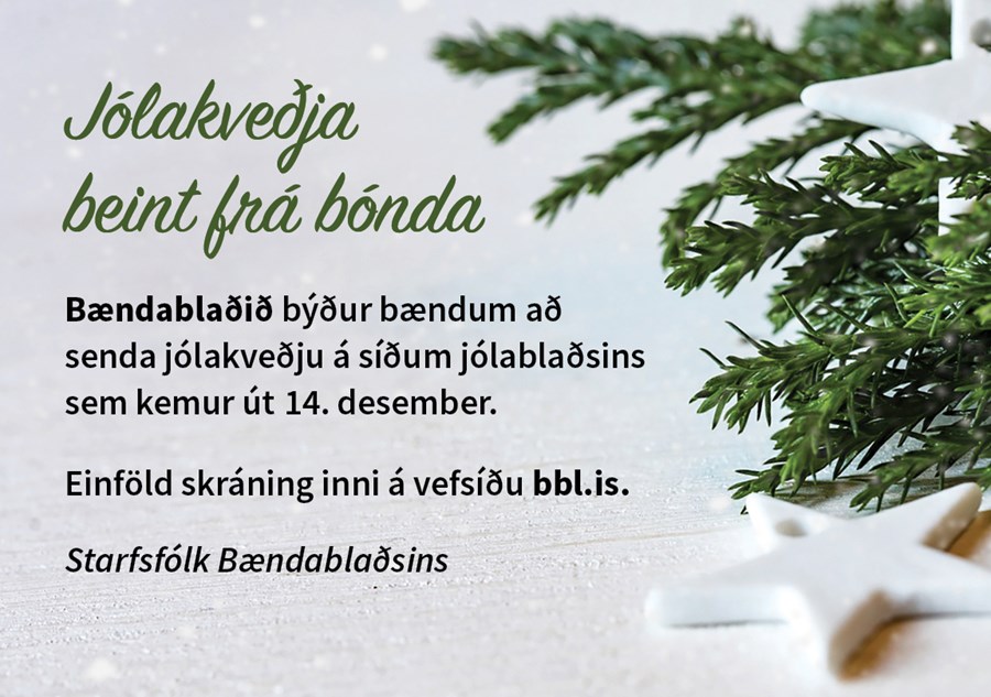 Bændablaðið býður bændum að senda jólakveðju á síðum Bændablaðsins sem kemur út 14. desember. Ein sameiginleg jólakveðja verður efst á síðu og nöfn búa og bænda koma undir. Þetta er kjörin leið til þess að senda lesendum Bændablaðsins kveðju úr sveitinni!