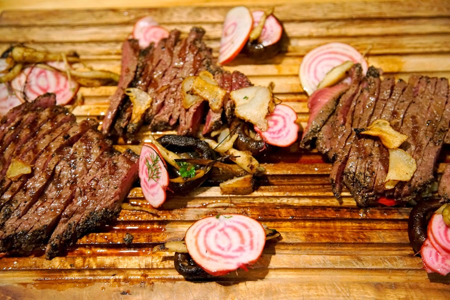Pipruð nautasteik með pönnusósu og ristuðum jarðskokkum