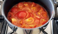 - Sjóðið niður 10 stk. saxaða tómata um helming (hægt að nota 1 dós af söxuðum tómötum).