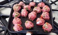 - Skiptið blöndunni í 20 kjötbollur, hnoðið kúlur í kringum mozzarella-tening og gætið þess vel að þekja ostinn alveg.